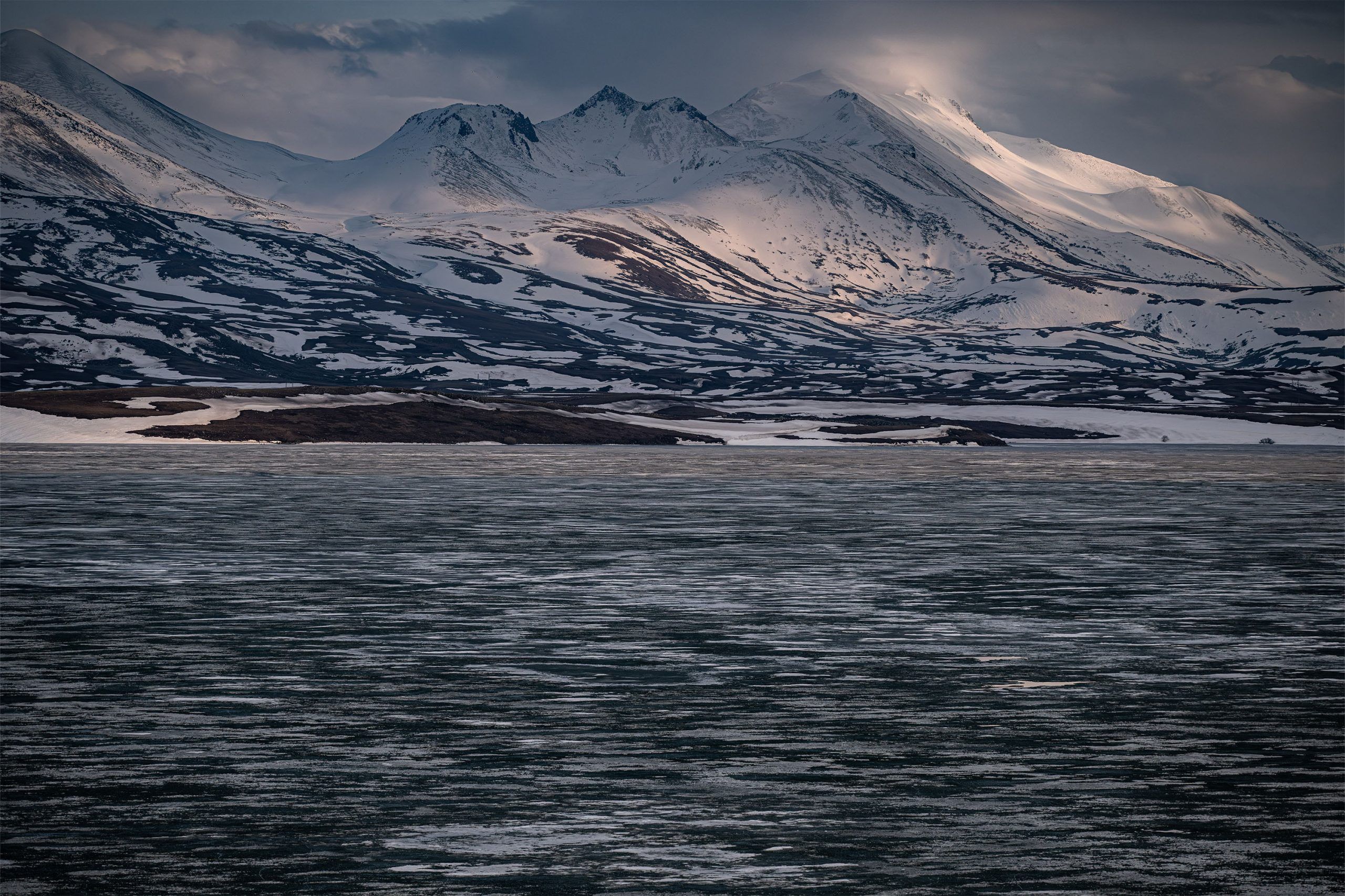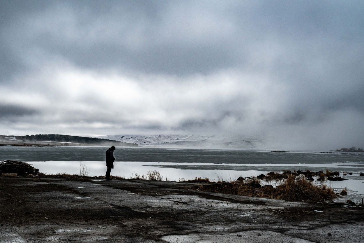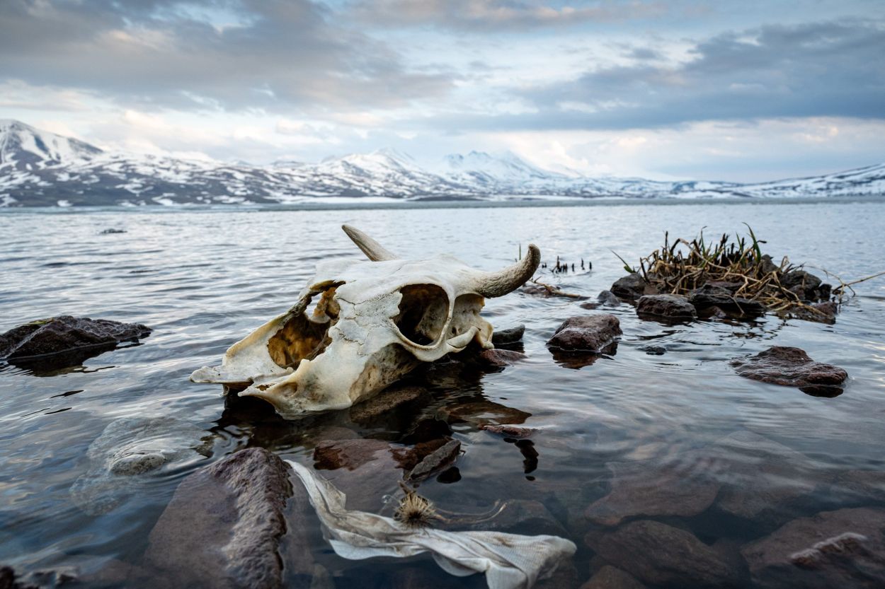 I look at a dead volcano in the distance. It is incredibly early in the morning. The moon is low. Like ghosts from the past, wisps of mist barely move above the open holes in the half-frozen lake. In the thin air at this altitude of more than 2,000 meters, the little man in the moon is sharply outlined in the milky blue of dawn.